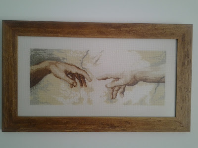 A Criação de Adão, de Michelangelo Buonarroti também (uma parte) foi bordada por mim. Trabalho que eu fiz num "abrir e fechar de olhos". Foi muito bom de bordar, tinha só (salvo erro) 12 cores. È um dos meus favoritos.